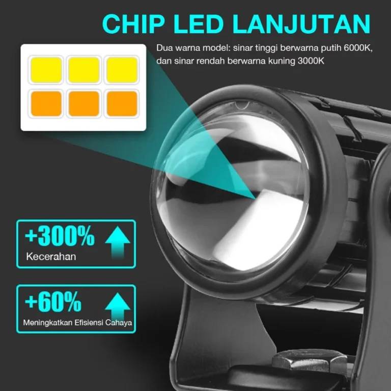 ✅ Dual Color LED (Putih & Kuning) – Cocok untuk mode lampu jauh & kabut