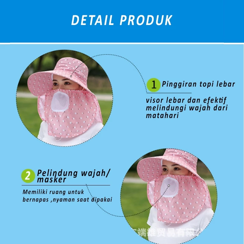 ✅ Brim sangat lebar & penutup muka-leher untuk proteksi maksimal