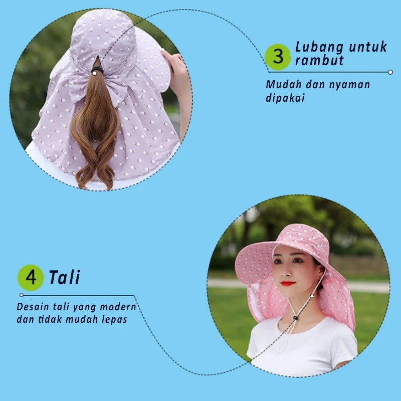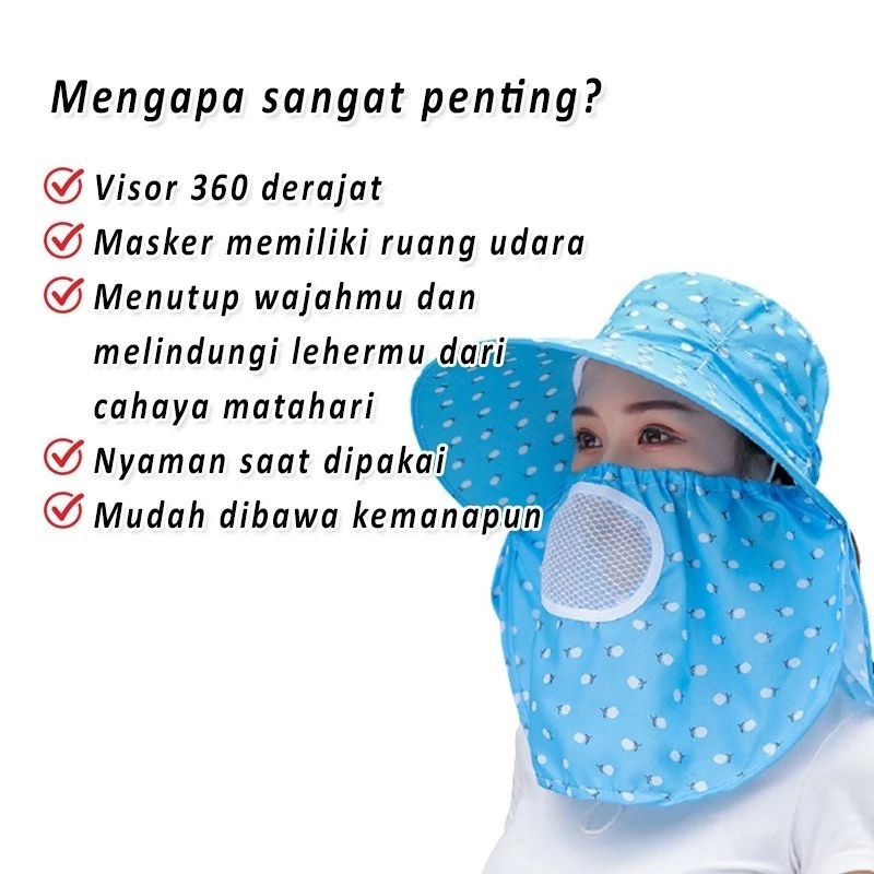 ✅ Brim sangat lebar & penutup muka-leher untuk proteksi maksimal